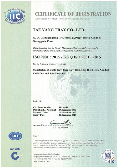 ISO9001ÀÎÁõ¼ : 2015 / KS Q ISO 9001 : 2015
